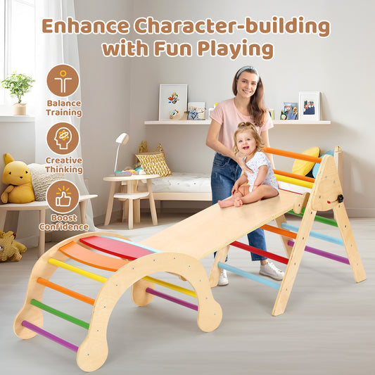 YOLEO Pikler Triangle Set Wooden Montessori Climbing Toys for Toddlers